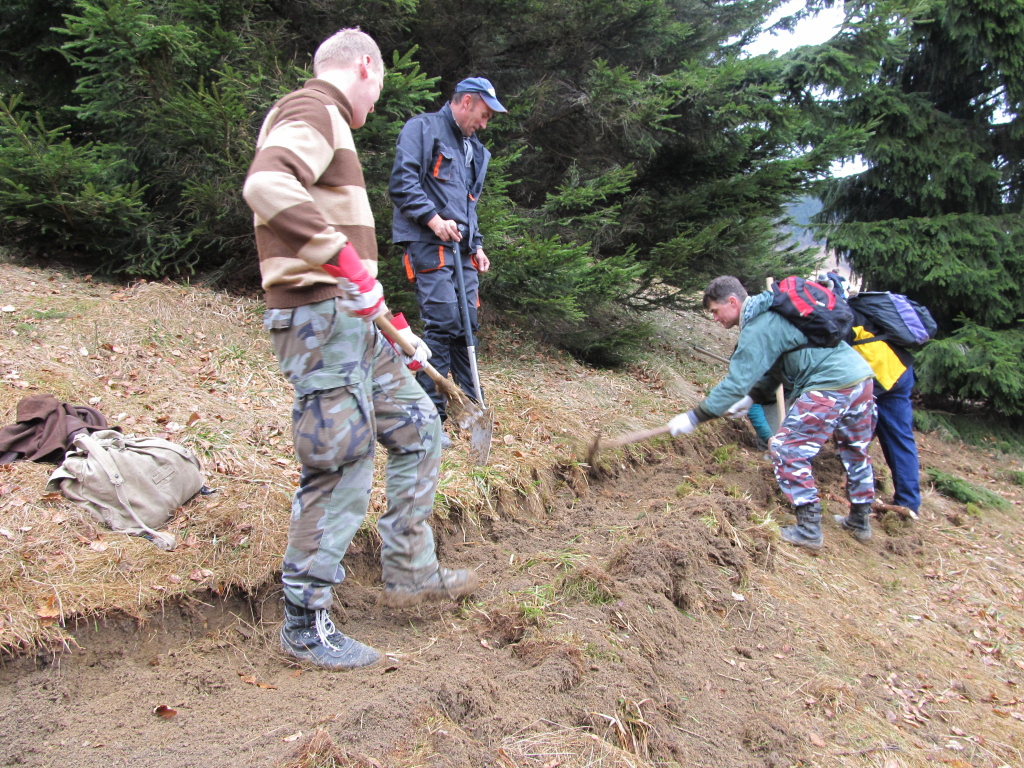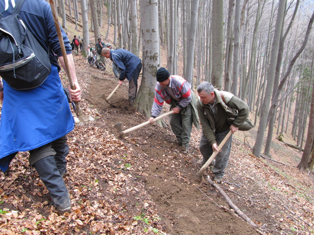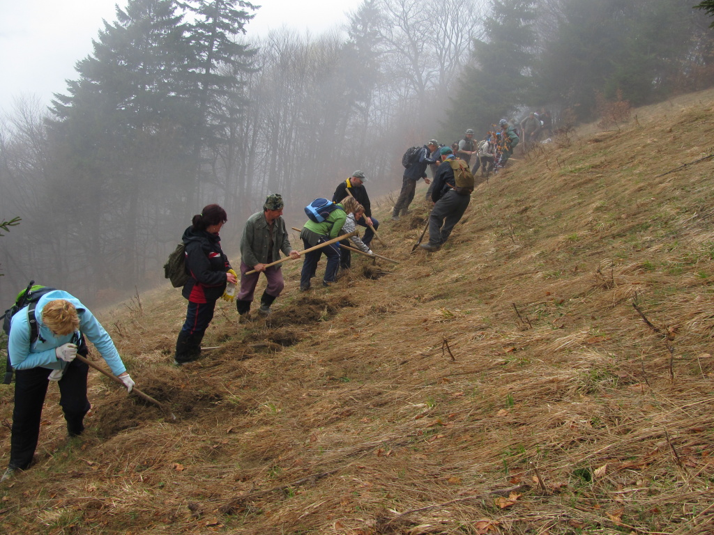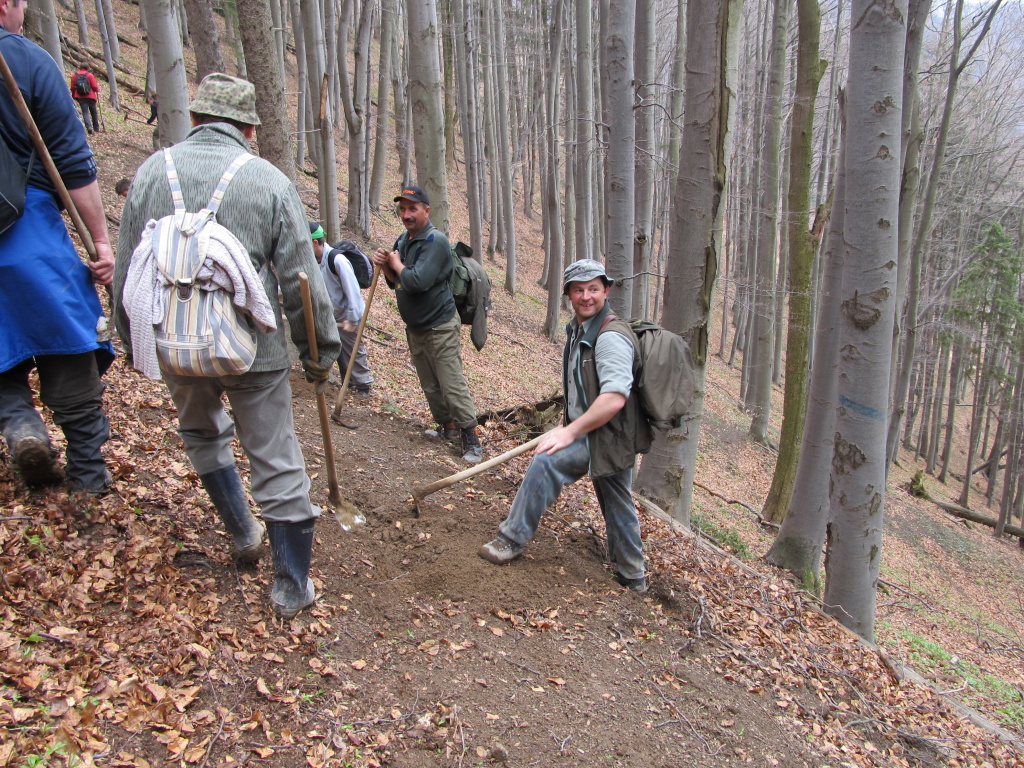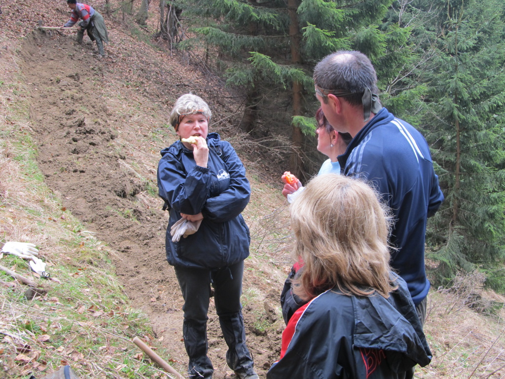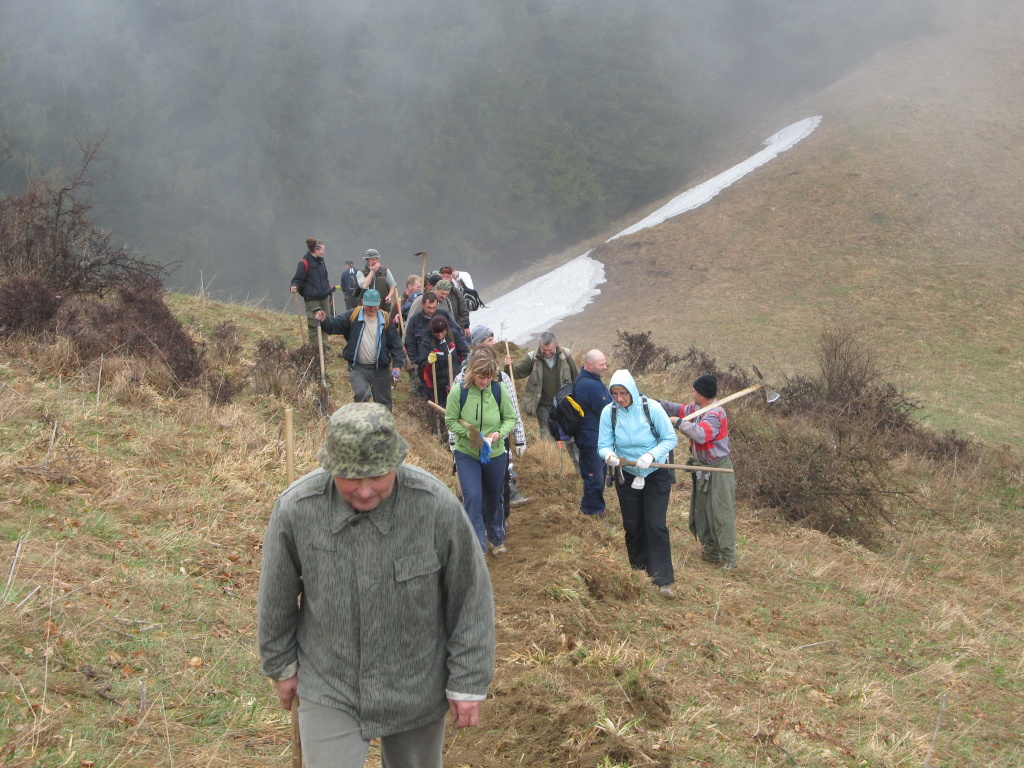 V sobotu /21.4. 2012/ sme sa pustili s poľovníkmi do prekopania ďalšej časti chodníka na Povrázkoch a následne chodníka okolo Panenky Márie do sedla pri Kýčere. Chodník kopalo 32 ochotných ľudí. Obetavé kuchárky nám v Páleniciach uvarili guláš. Bola to super akcia so super ľuďmi.