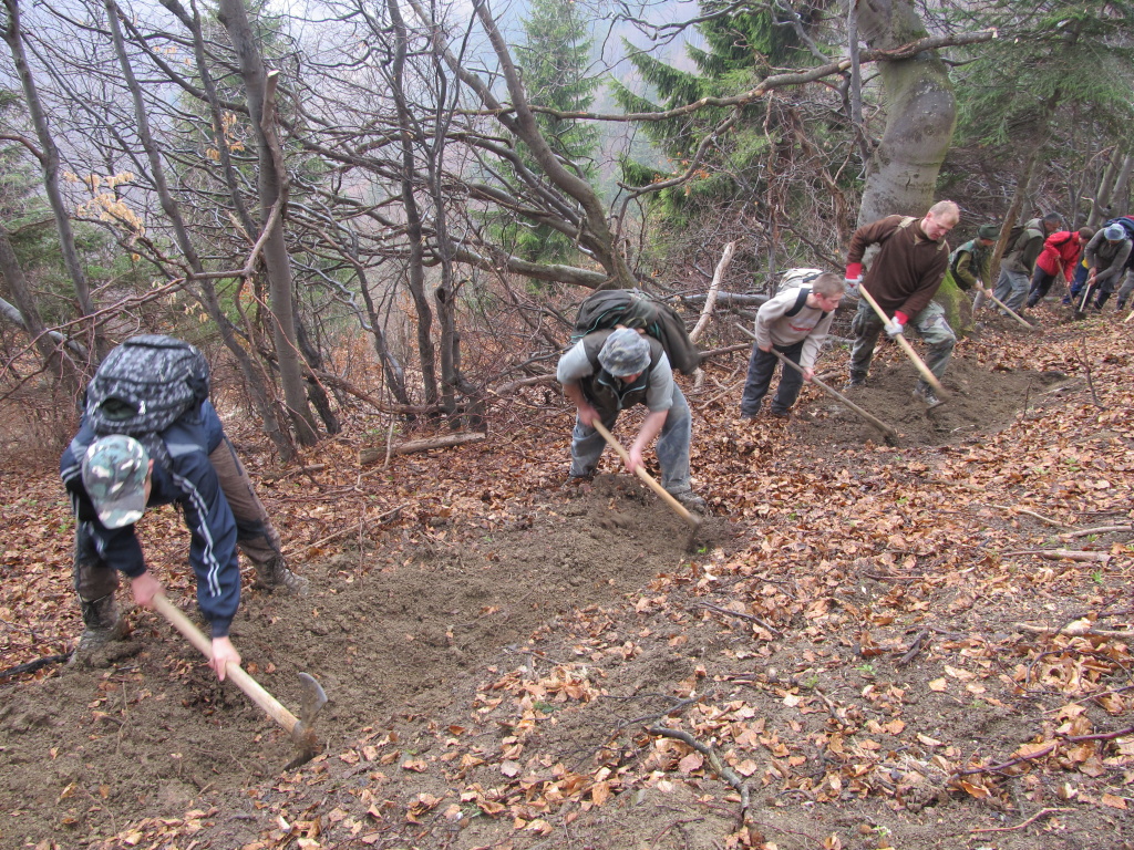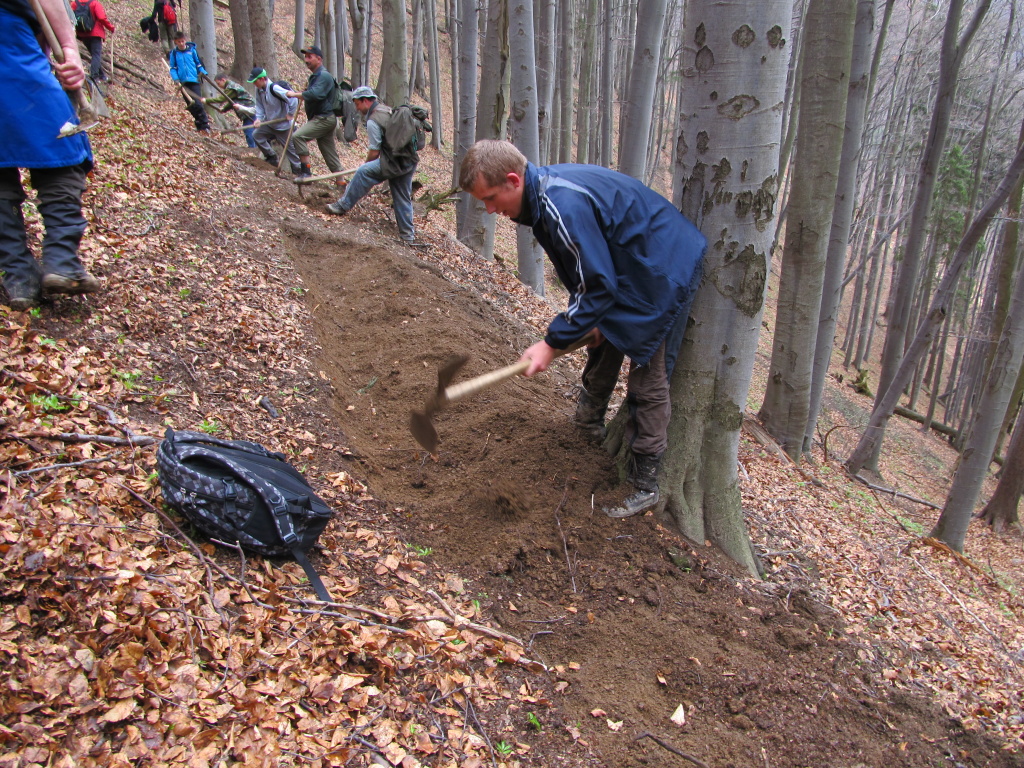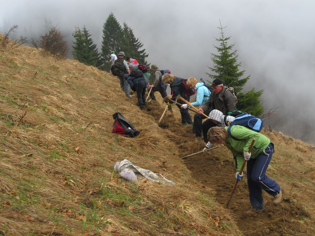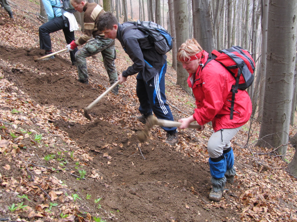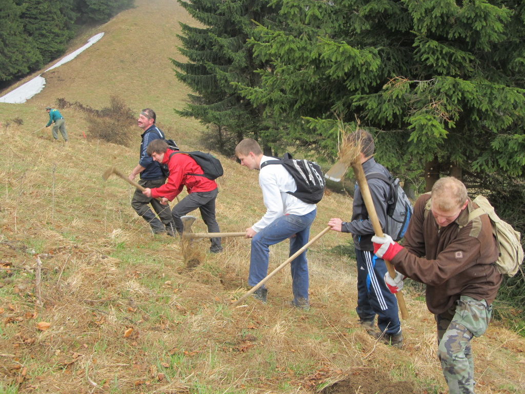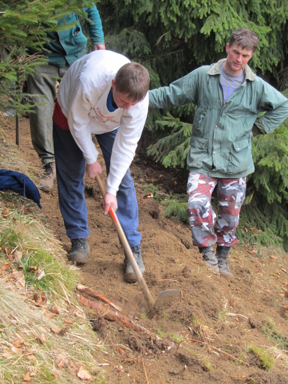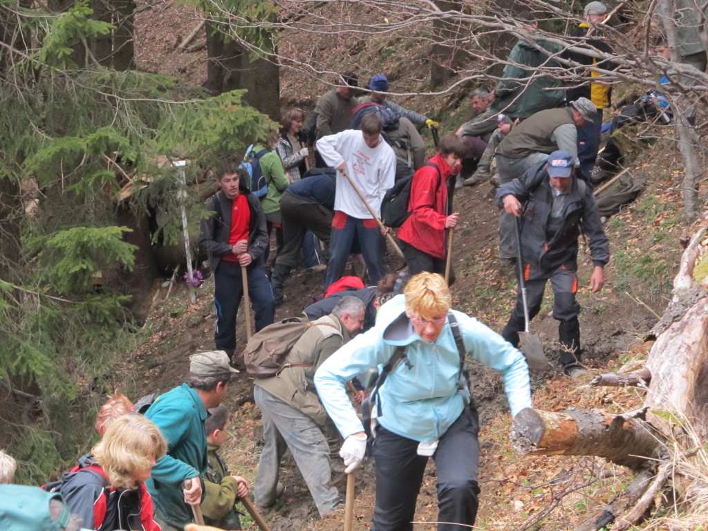 V sobotu /21.4. 2012/ sme sa pustili s poľovníkmi do prekopania ďalšej časti chodníka na Povrázkoch a následne chodníka okolo Panenky Márie do sedla pri Kýčere. Chodník kopalo 32 ochotných ľudí. Obetavé kuchárky nám v Páleniciach uvarili guláš. Bola to super akcia so super ľuďmi.