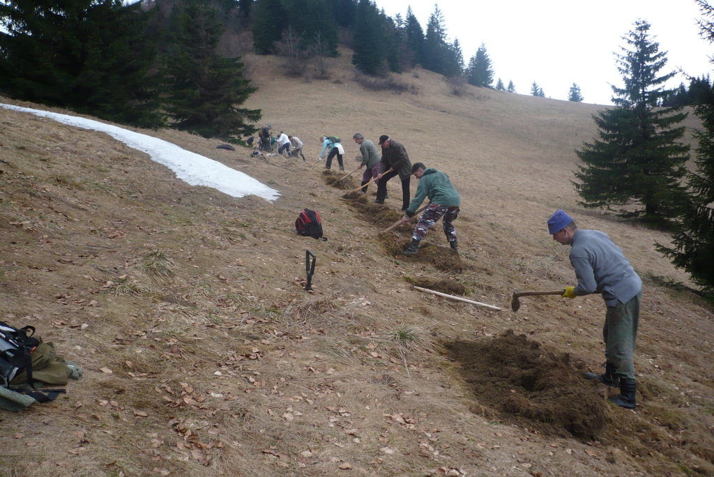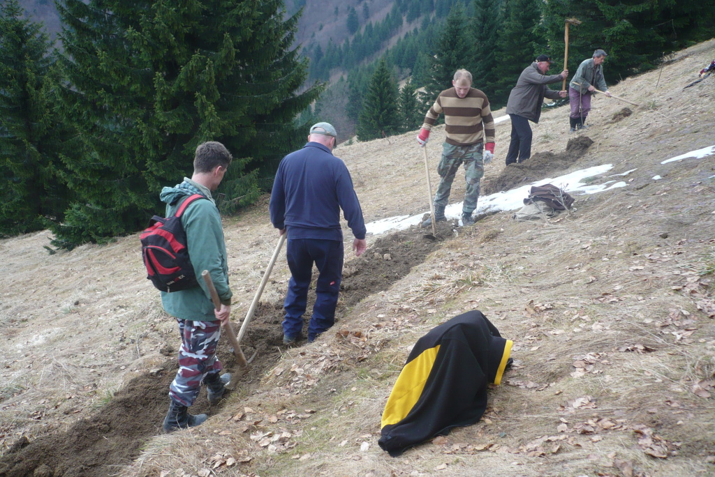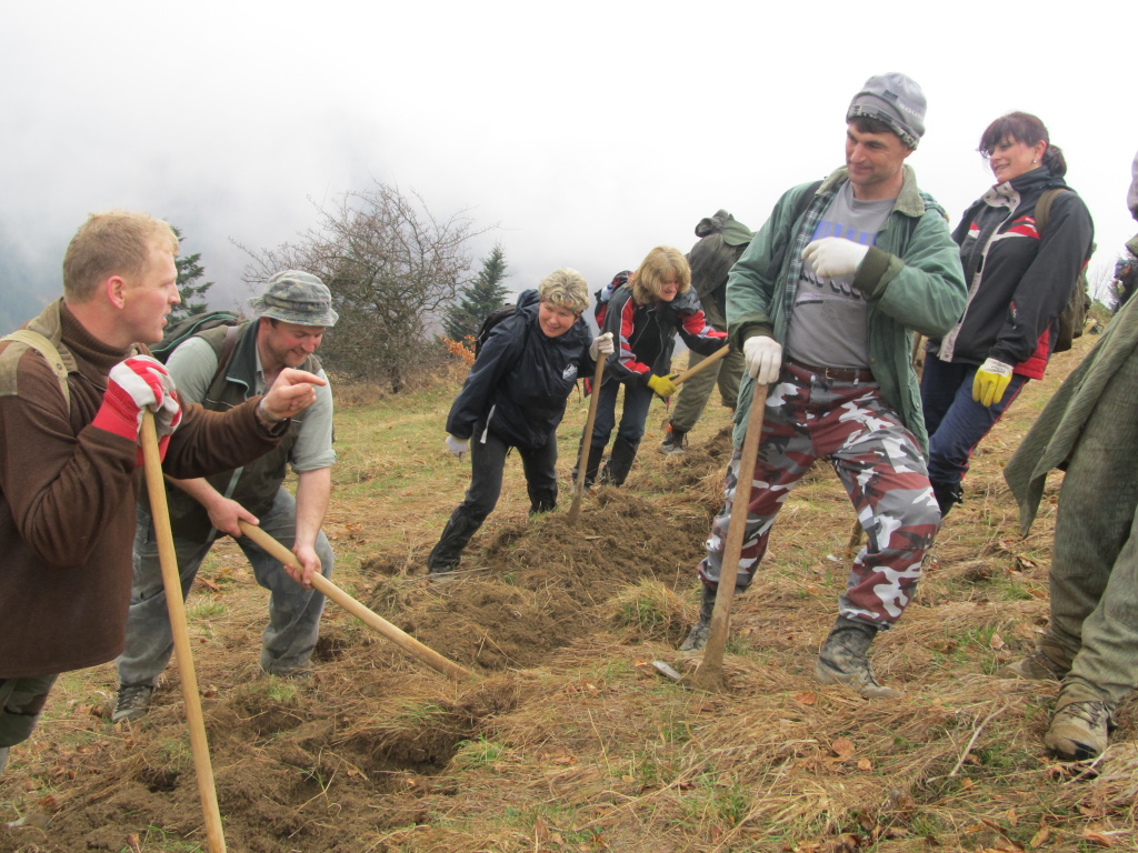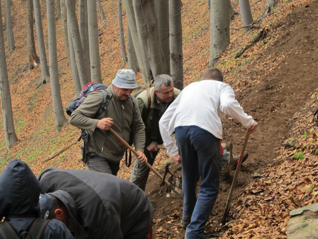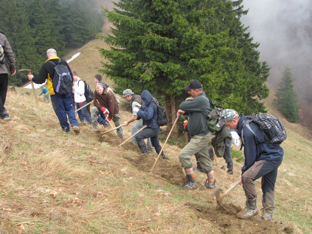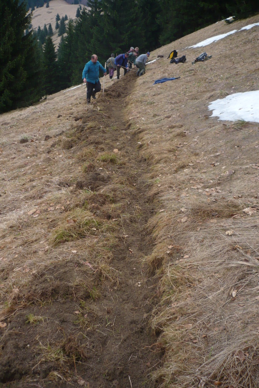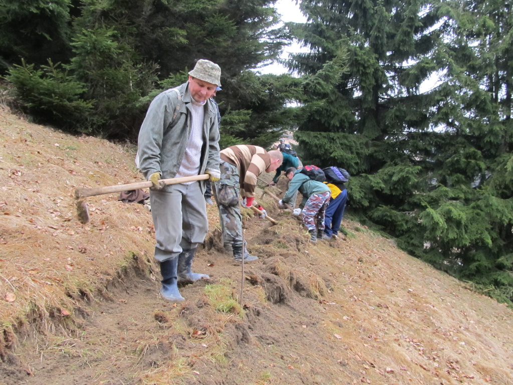 V sobotu /21.4. 2012/ sme sa pustili s poľovníkmi do prekopania ďalšej časti chodníka na Povrázkoch a následne chodníka okolo Panenky Márie do sedla pri Kýčere. Chodník kopalo 32 ochotných ľudí. Obetavé kuchárky nám v Páleniciach uvarili guláš. Bola to super akcia so super ľuďmi.