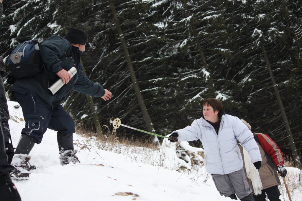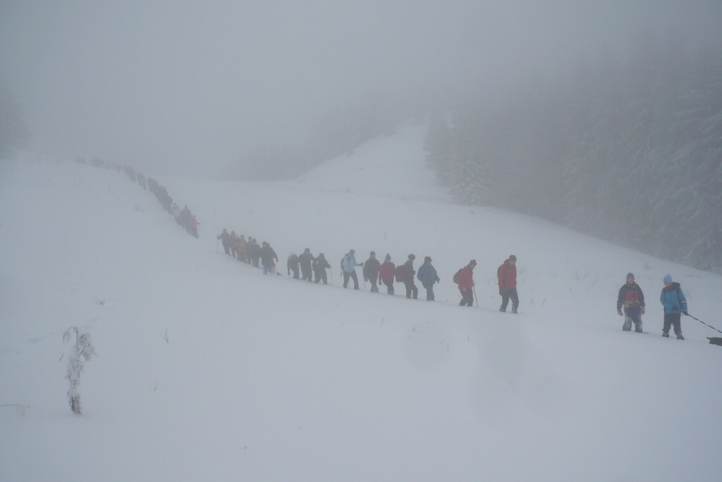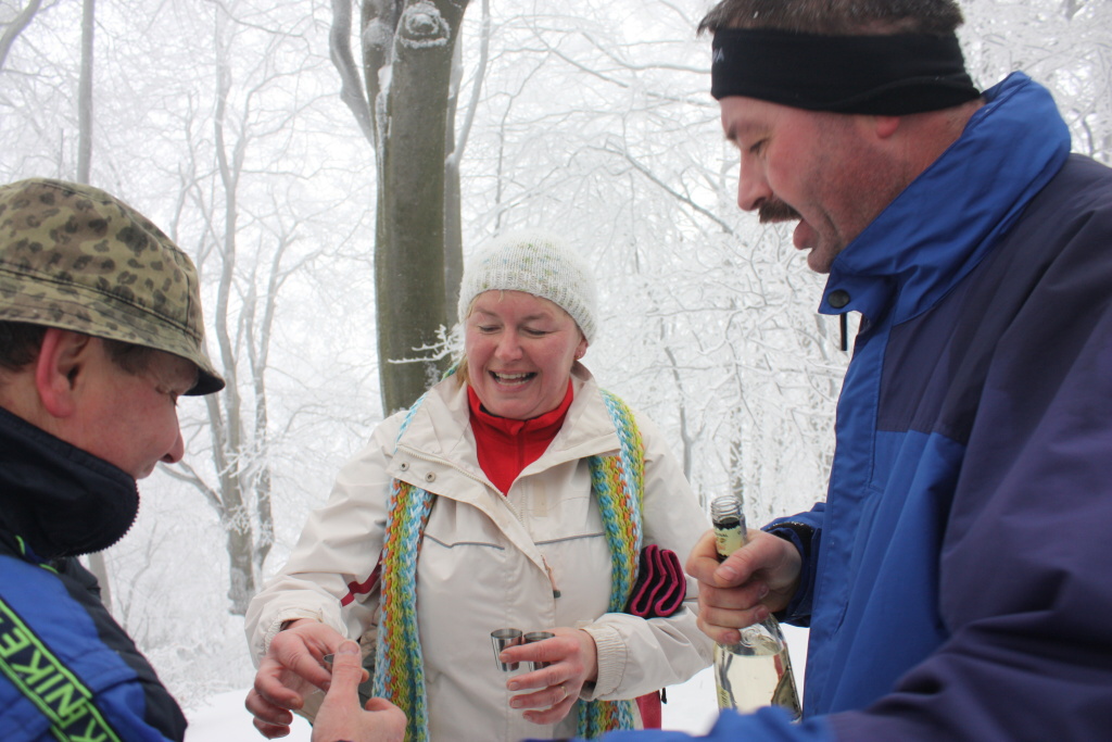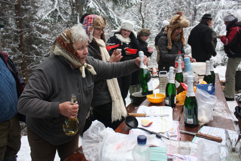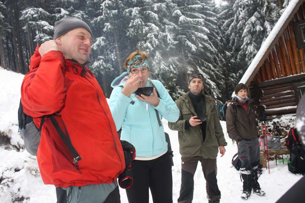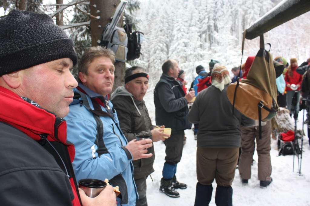 Ráno nás veľmi potešil vŕzgajúci sneh a pekný počet turistov z Ďurčinej a okolia. Celú trasu prešlo 61 turistov a pri chate bolo ďalších 13, ktorí varili výbornú cesnačku. Zima sa nám ukázala miestami so snehom do pol pása, ale tak to má byť. Medzi najstaršou a najmladšou turistkou bol rozdiel 70 rokov, čo je priam neuveriteľné. V Páleniciach sa toľko ľudí ešte nestretlo.