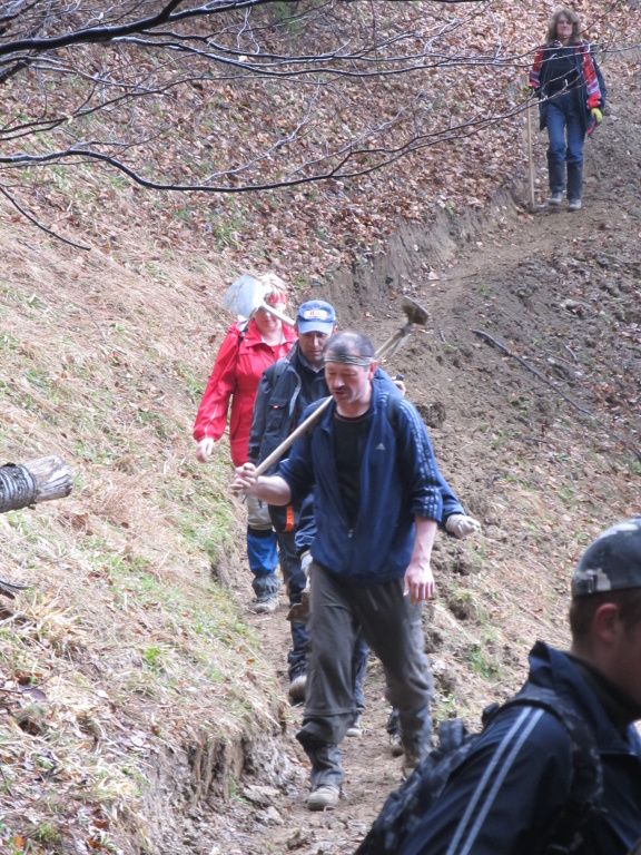 V sobotu /21.4. 2012/ sme sa pustili s poľovníkmi do prekopania ďalšej časti chodníka na Povrázkoch a následne chodníka okolo Panenky Márie do sedla pri Kýčere. Chodník kopalo 32 ochotných ľudí. Obetavé kuchárky nám v Páleniciach uvarili guláš. Bola to super akcia so super ľuďmi.